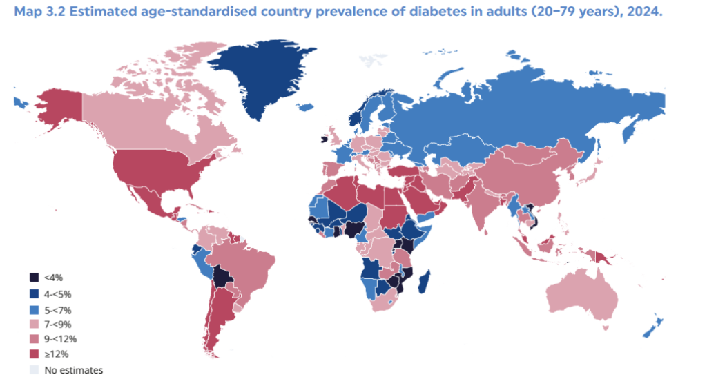 The number of adults living with diabetes has more than doubled over the span of 30 years, rising from 7% in 1990 to more than 14% in 2022. An estimated 828 million adults worldwide currently live with diabetes, and if trends continue, this is projected to reach 1.3 billion by 2050.